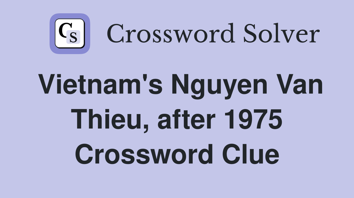 Vietnam #39 s Nguyen Van Thieu after 1975 Crossword Clue Answers