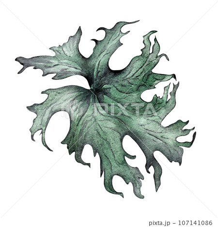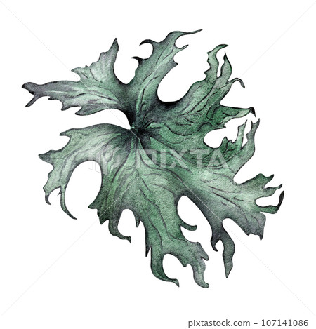 Watercolor dark green uneven leaf isolated on 插圖素材 107141086 PIXTA圖庫
