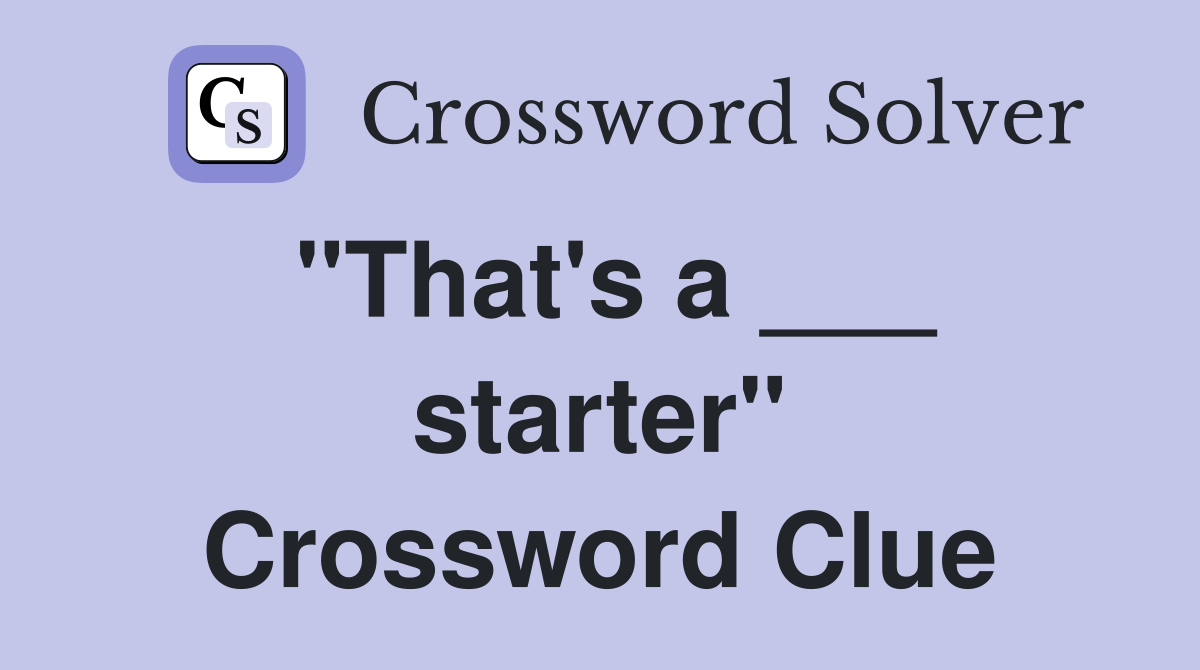 quot That #39 s a starter quot Crossword Clue Answers Crossword Solver