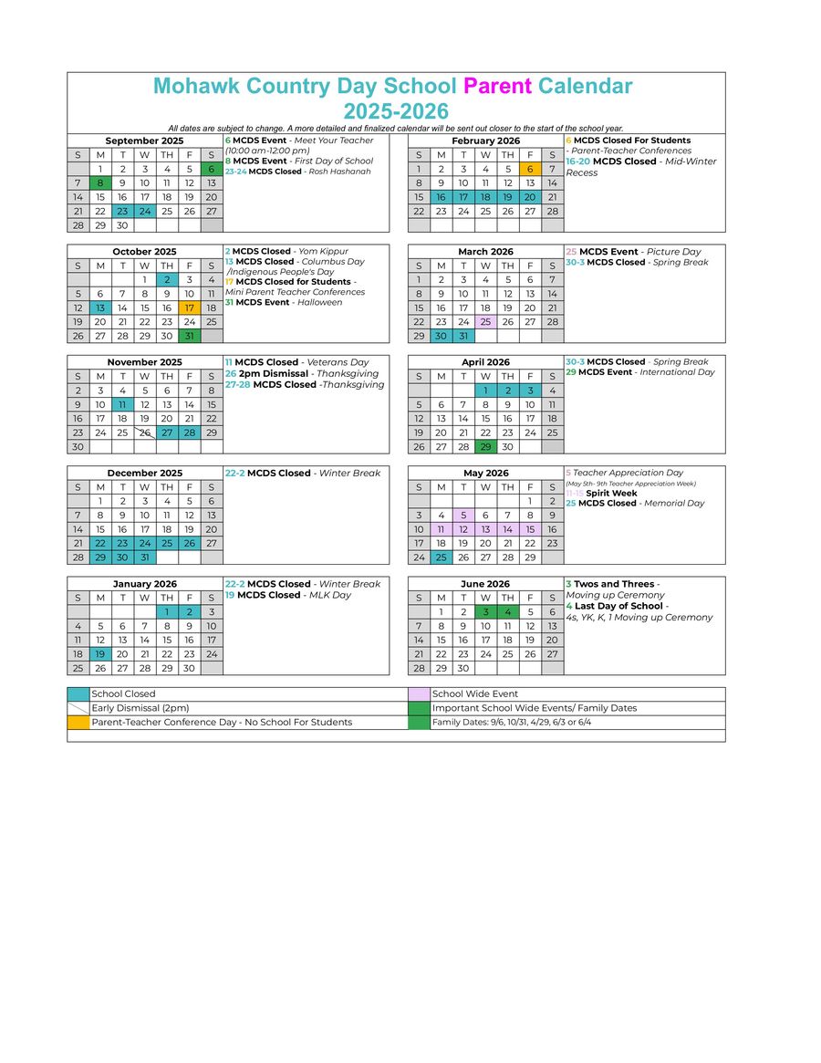 MCDS 2025 2026 Master Parent Calendar by Mohawk Day Camp Flipsnack