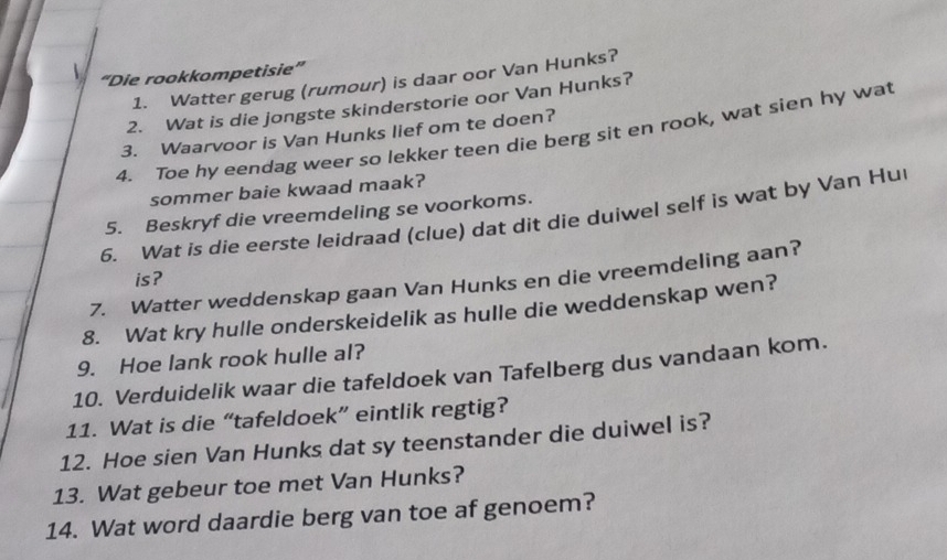 Solved: Die rookkompetisie 1 Watter gerug (rumour) is daar oor Van