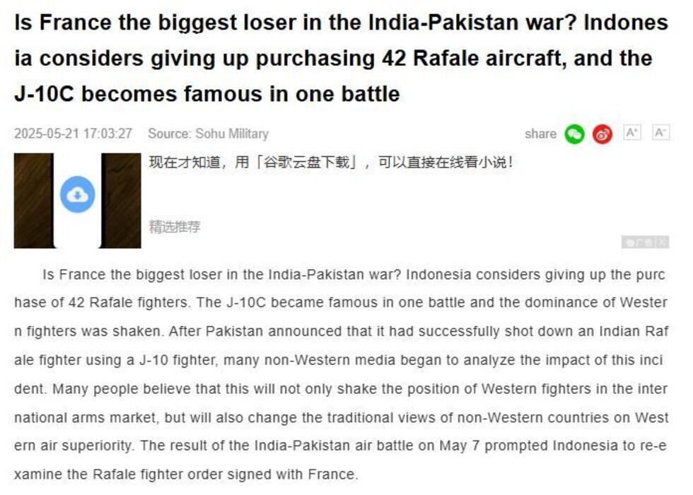 Chinese media sphere wages smear campaign against France #39 s Rafale jet