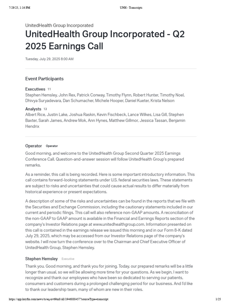 UNH Transcripts PDF Medicare (United States) Medicaid