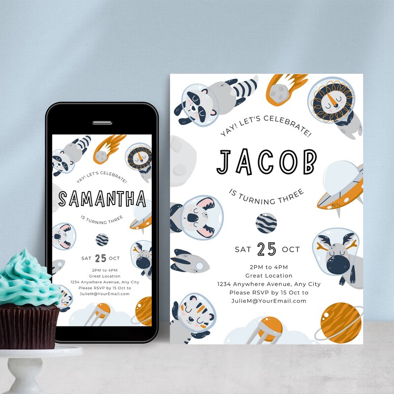 Cat Space Party Invite Etsy UK