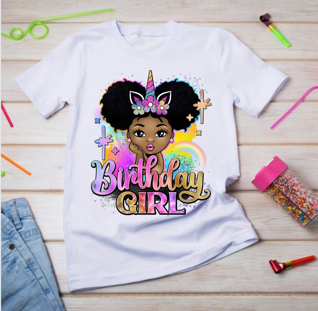 African American Unicorn Birthday Girl Shirt Afro Puff Unicorn Shirt