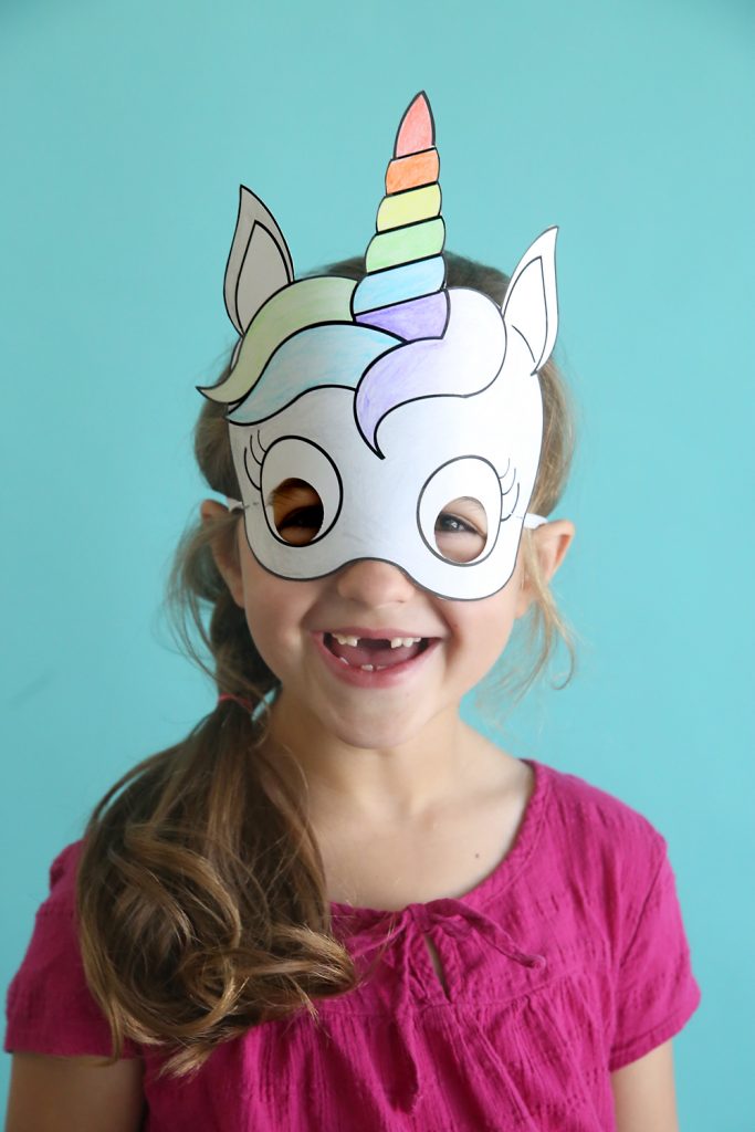 Unicorn Paper Mask Printable Fairytale Coloring Craft Activity Costume