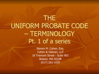 This article deals with the meaning of uniform probate code