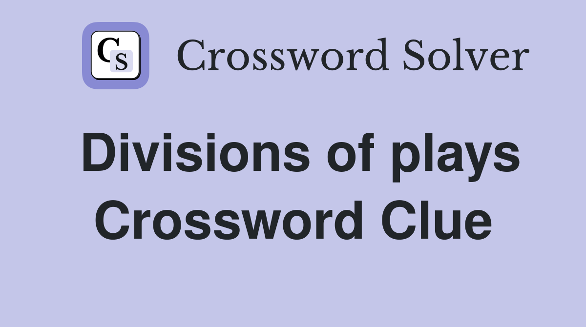 Divisions of plays Crossword Clue Answers Crossword Solver