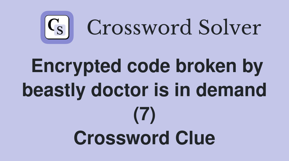Encrypted code broken by beastly doctor is in demand (7) Crossword