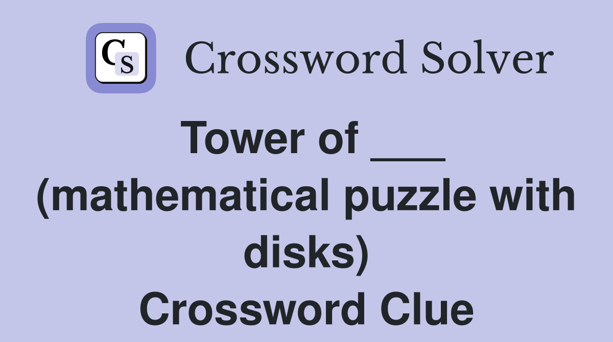 Tower of (mathematical puzzle with disks) Crossword Clue Answers