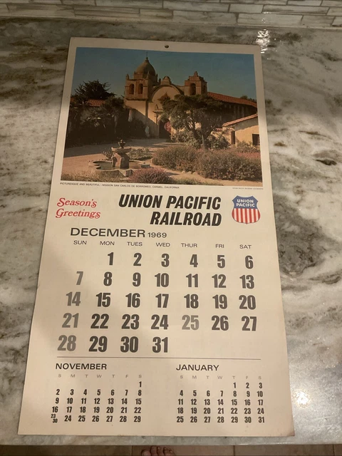 1969 70 UNION PACIFIC Railroad Color Monthly Wall Calendar 12 1/2 X 23