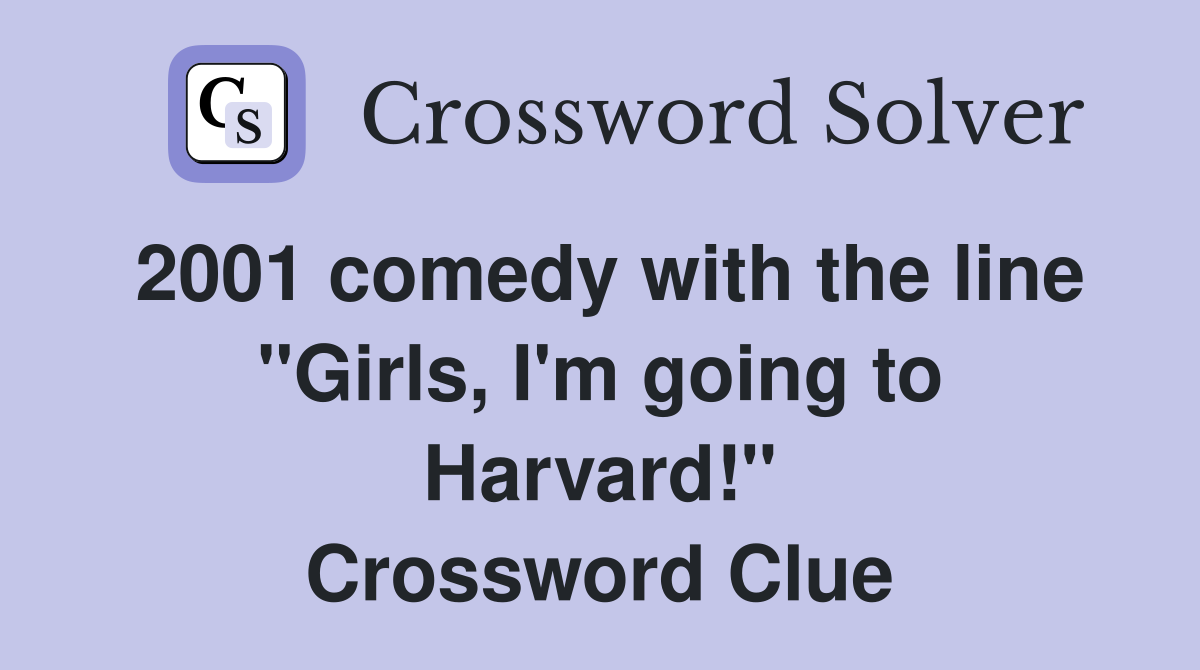 2001 comedy with the line quot Girls I #39 m going to Harvard quot Crossword
