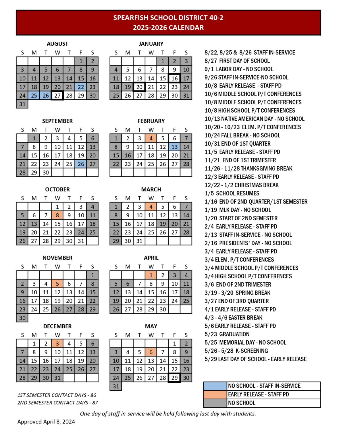 Spearfish School District SD Calendar 25 26 Revised pdf EduCounty