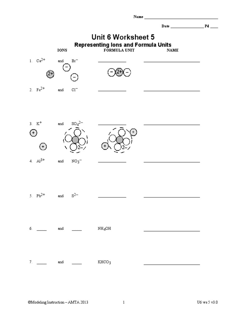 Unit 6 Worksheet 5 Representing Ions And Formula Units Answers Key
