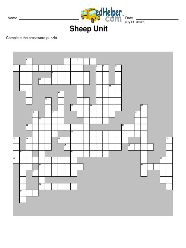 Sheep Unit Terms Crossword PDF Sheep Wool