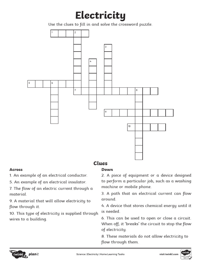 Electrical Crossword Puzzle at Doris Whittaker blog