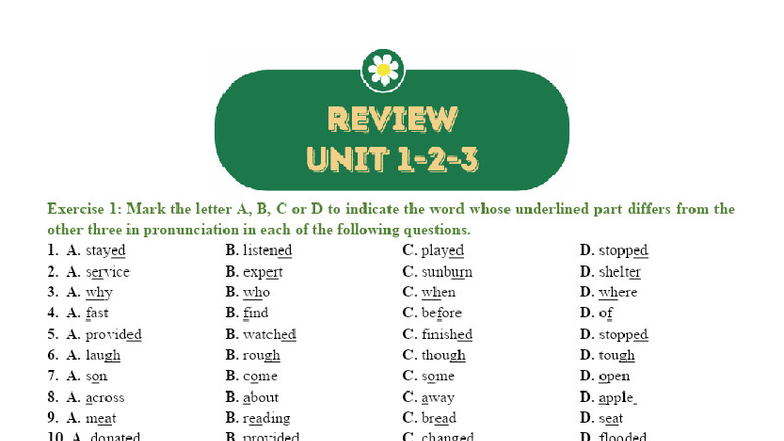 REVIEW UNIT: Pronunciation and Stress Exercises for Global Success (123