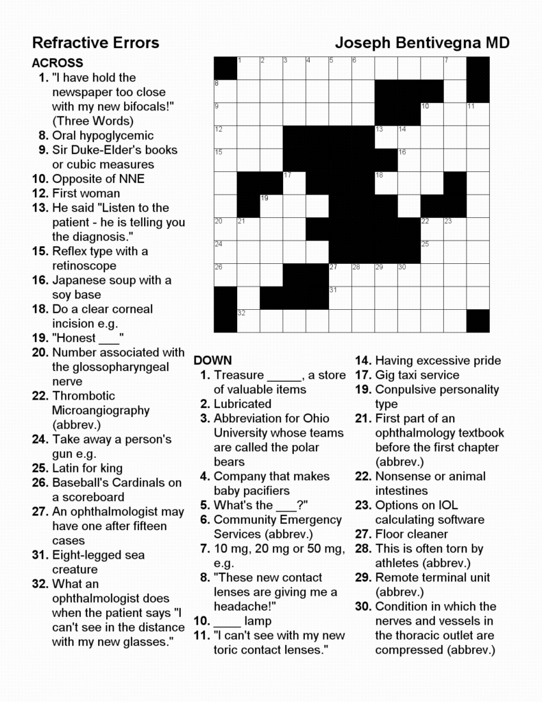 Ophthalmic Crossword Refractive Errors