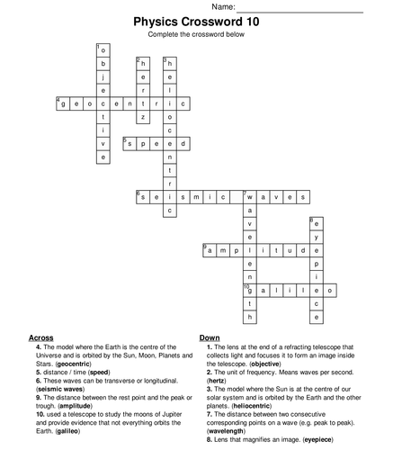 Physics Crossword Puzzle Worksheet Activity Teaching Resources
