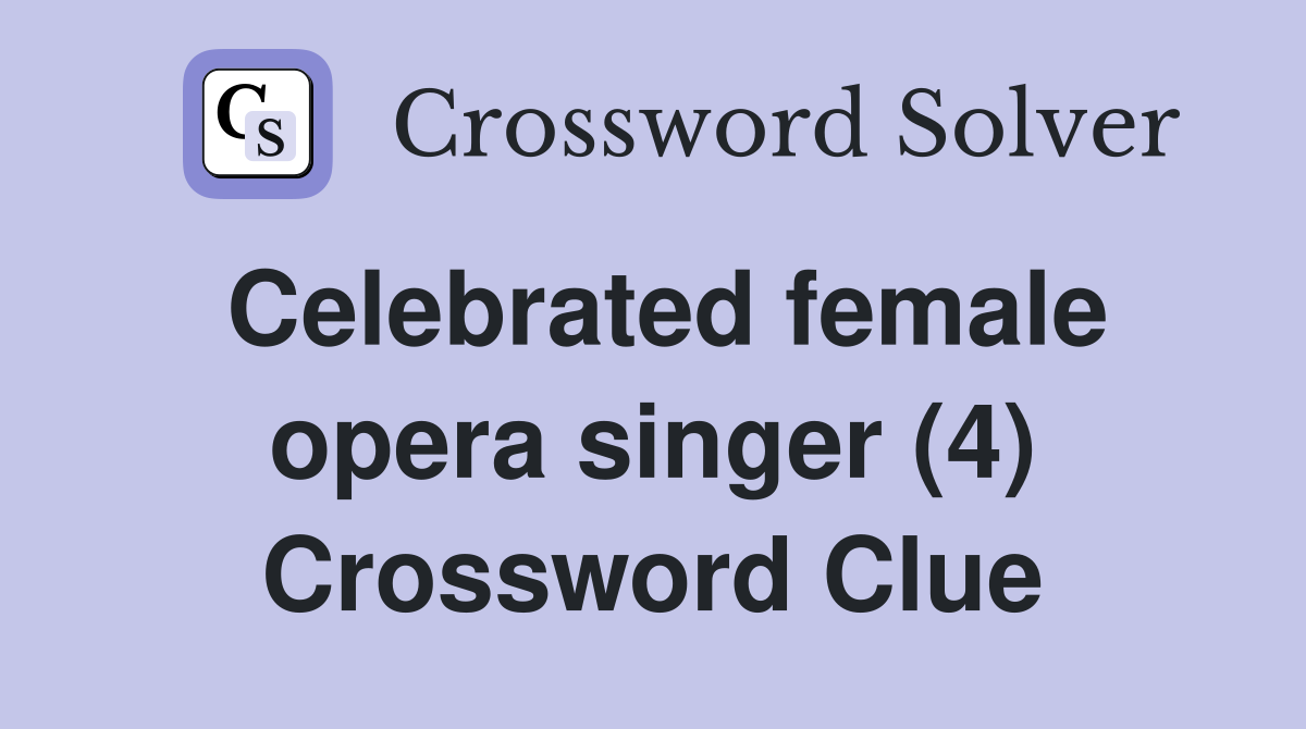Celebrated female opera singer (4) Crossword Clue Answers Crossword