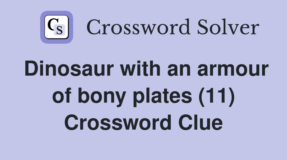 Dinosaur with an armour of bony plates (11) Crossword Clue Answers