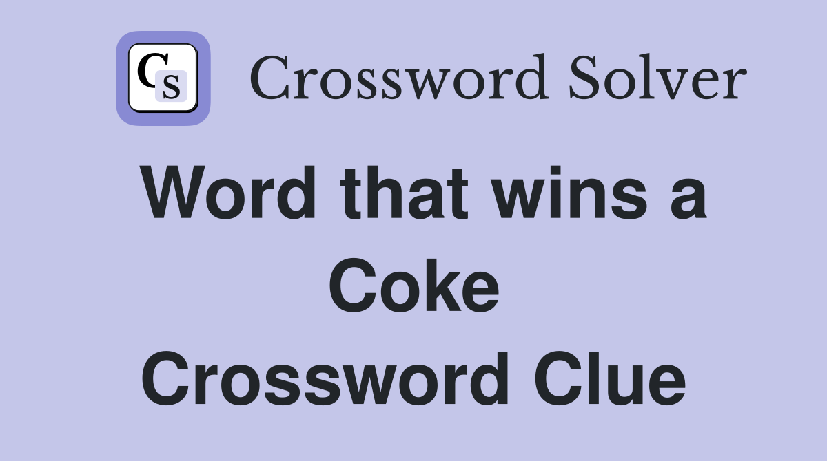 Word that wins a Coke Crossword Clue Answers Crossword Solver