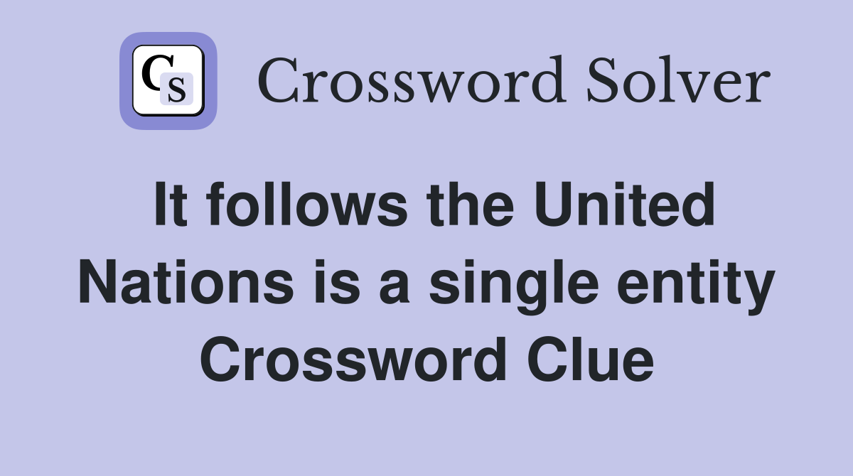 It follows the United Nations is a single entity Crossword Clue