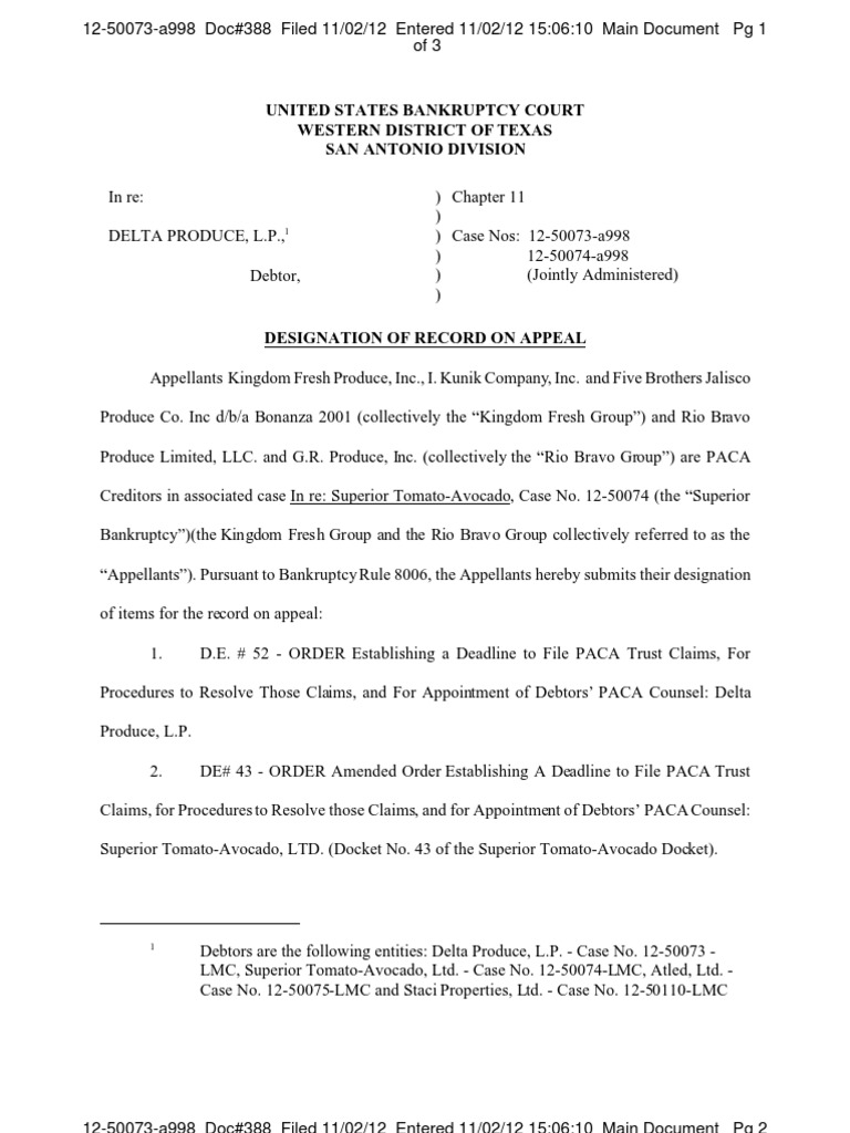 in the united states bankruptcy court Western District of Doc
