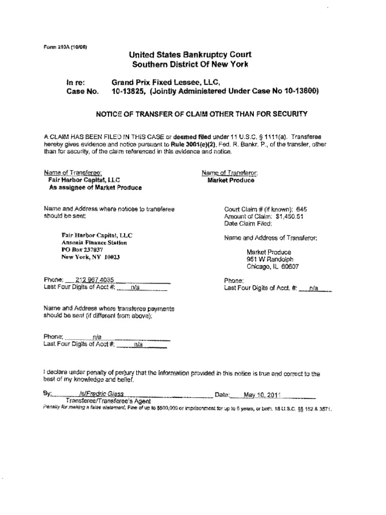 United States Bankruptcy Court Southern District of New York Re: Grand