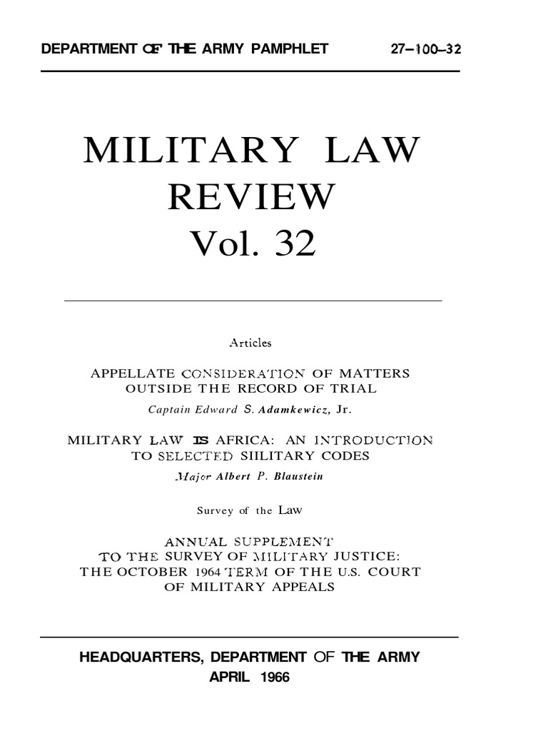 Military Law Review: Department The Army Pamphlet 27 100 32 Download