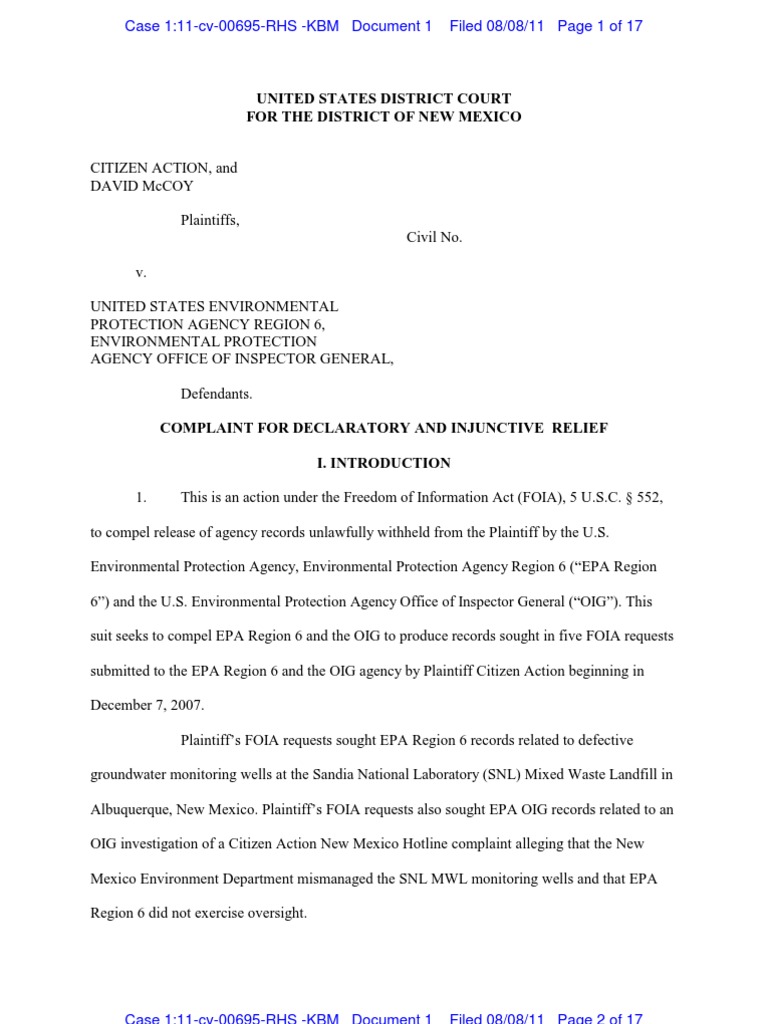 Citizen Action David McCoy Vs US EPA Region 6 US District Court