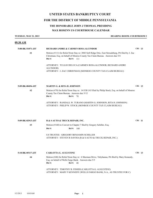 united states bankruptcy court Middle District of Pennsylvania