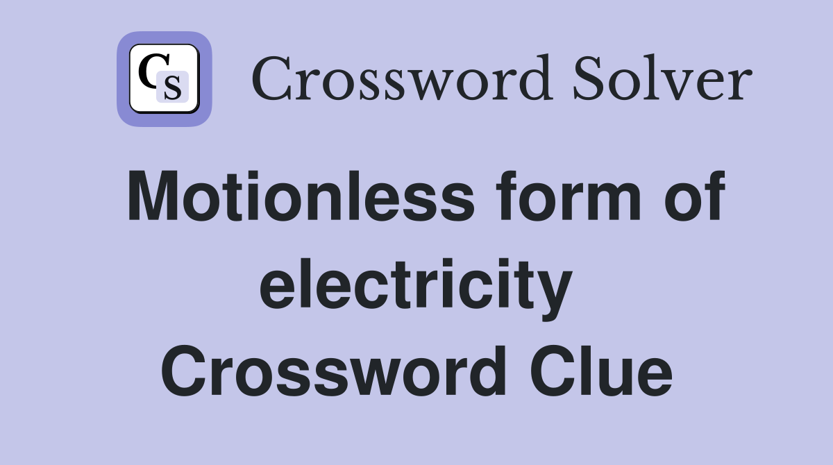 Motionless form of electricity Crossword Clue Answers Crossword Solver