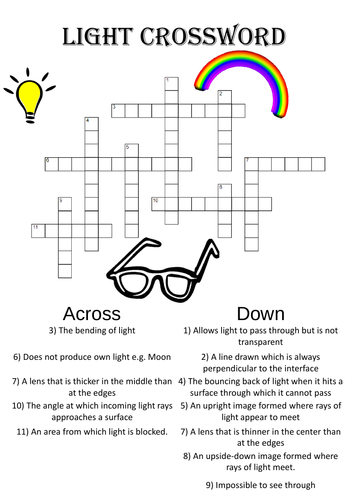 Physics Crossword Puzzle: Light (Includes answer key) Teaching Resources