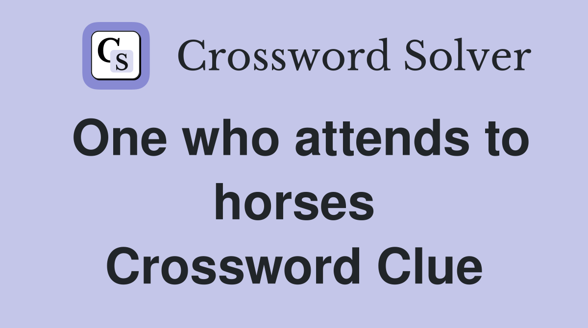 One who attends to horses Crossword Clue Answers Crossword Solver