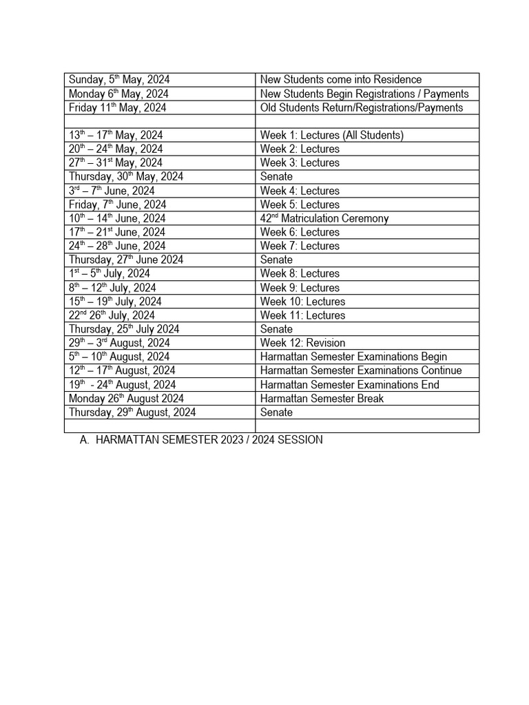 2020 2021 Session University of Calabar Calender PDF Academic Term