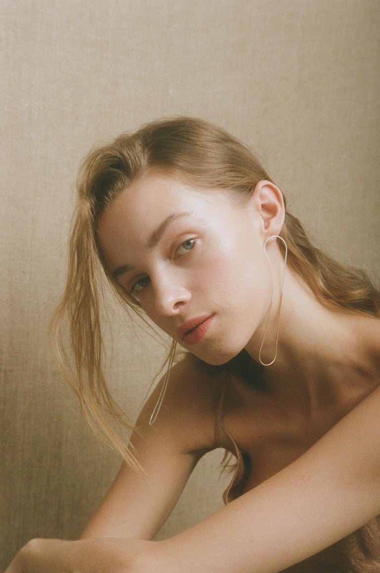 Earrings Hoops Minimal Long Snake Chain 18K Gold Plated Mixed Greek