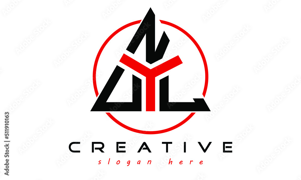 UNL three letter creative triangle shape in circle logo design vector