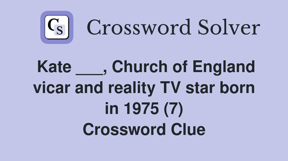 Kate Church of England vicar and reality TV star born in 1975 (7
