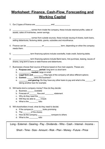 IGCSE Business: Finance Worksheet Teaching Resources