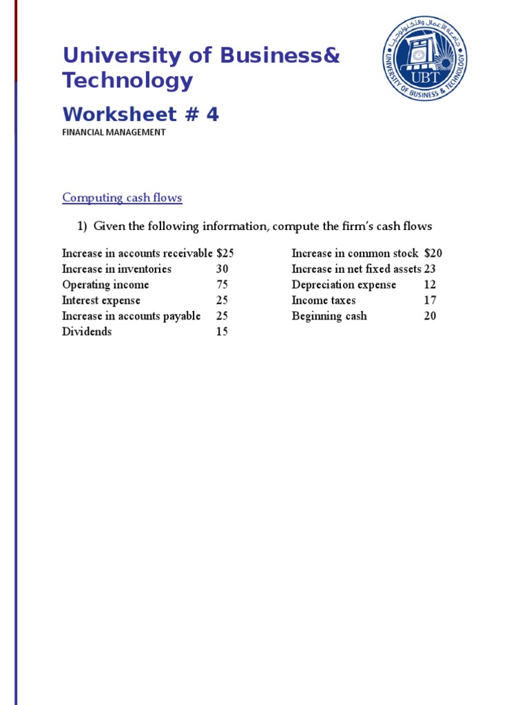 University of Business Technology: Worksheet # 4 PDF Expense