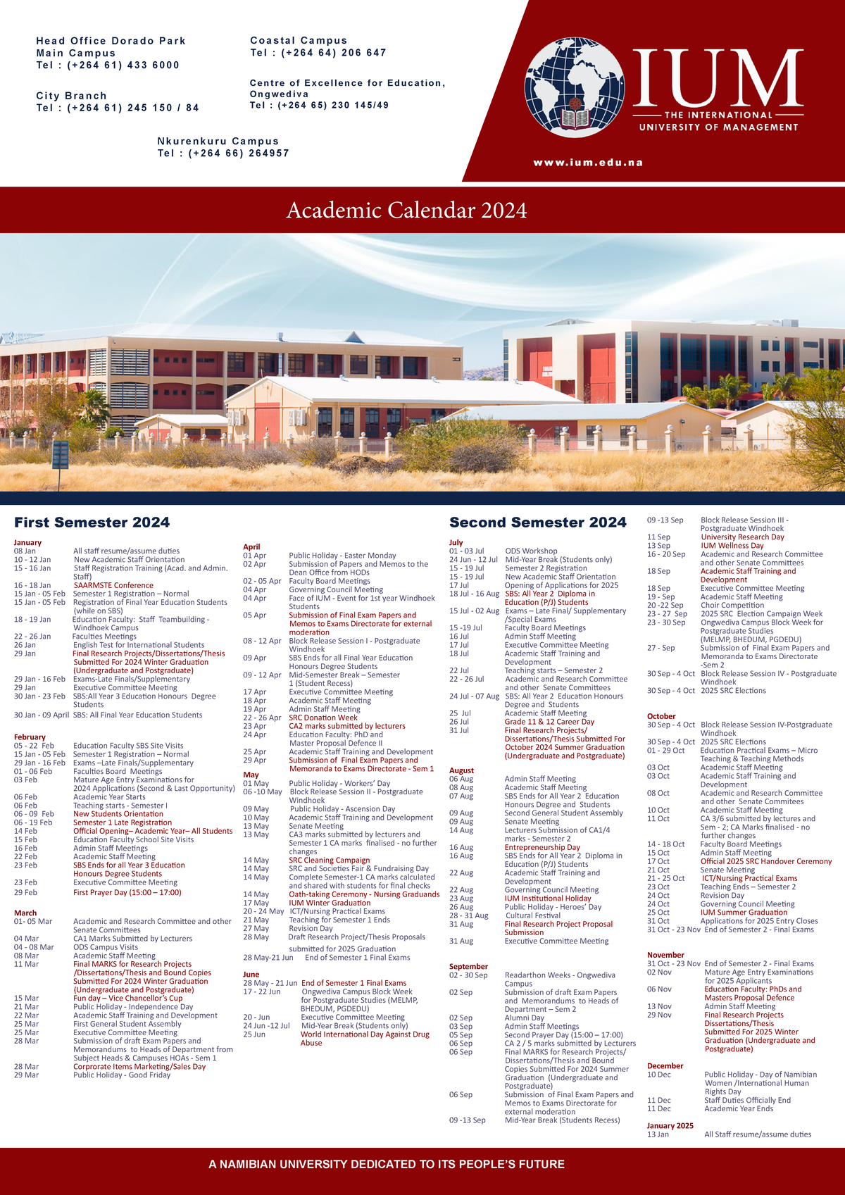 Academic Calendar 2024 1 A NAMIBIAN UNIversIty DeDIcAteD to Its