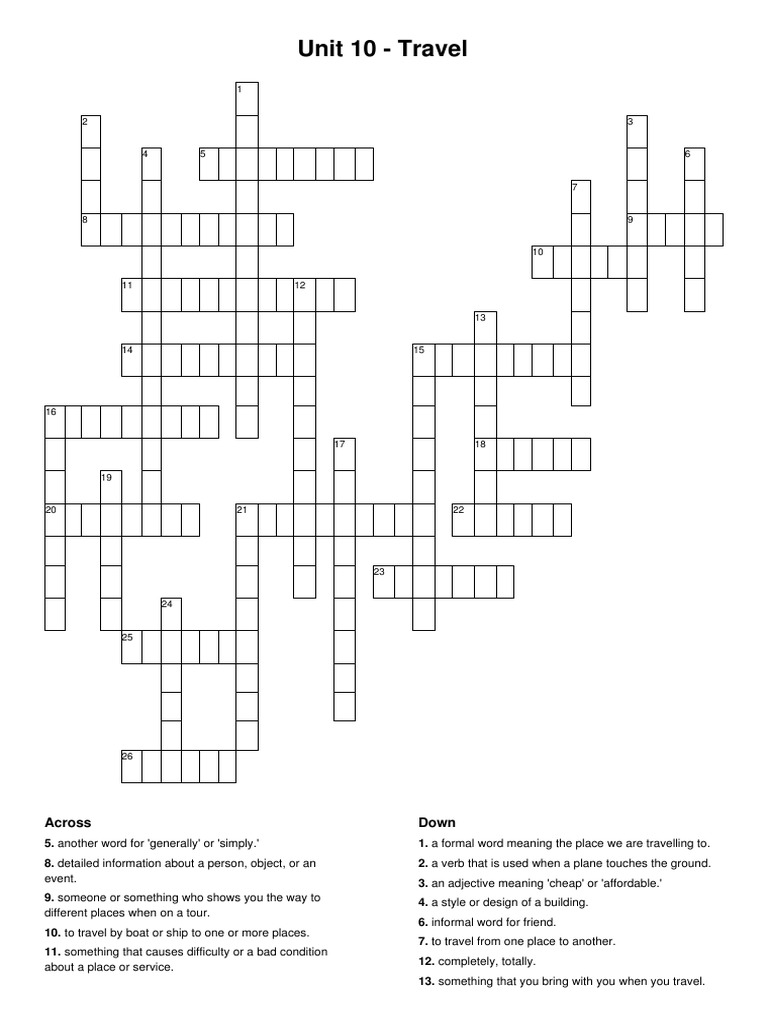 Unit 10 Travel (Crossword Puzzle) PDF Business