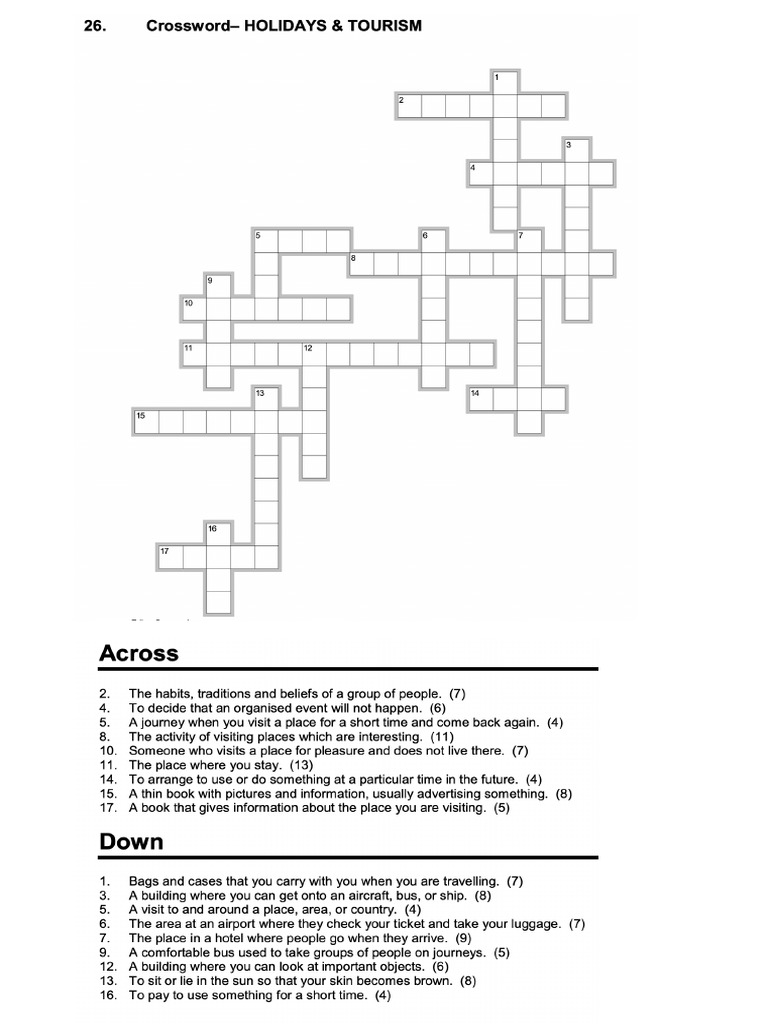 CROSSWORD HOLIDAYS AND TOURISM PDF