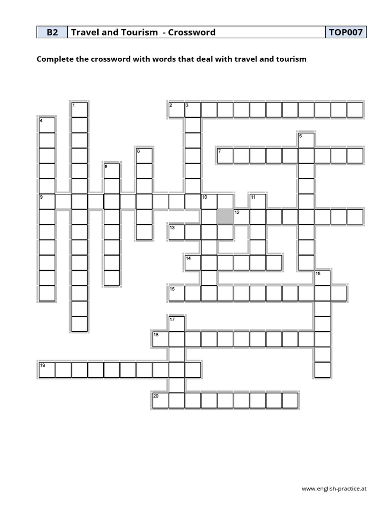 Travel and Tourism Crosswords PDF