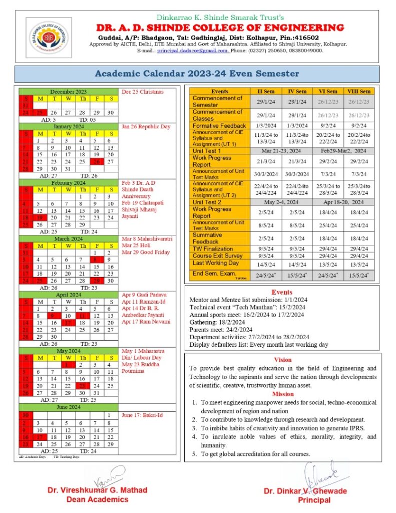 Academic Calender DEPARTMENT OF FIRST YEAR ENGINEERING