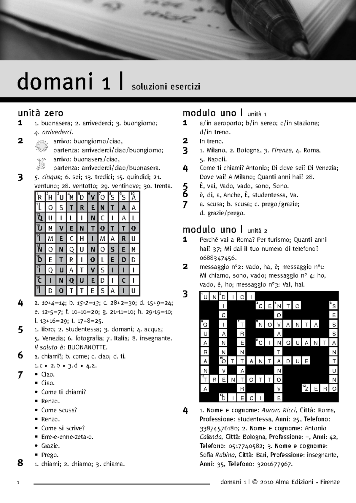 Domani 1 Chiavi: Esercizi e Test Modulo Uno e Due Studocu
