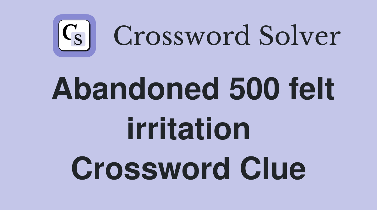 Abandoned 500 felt irritation Crossword Clue Answers Crossword Solver
