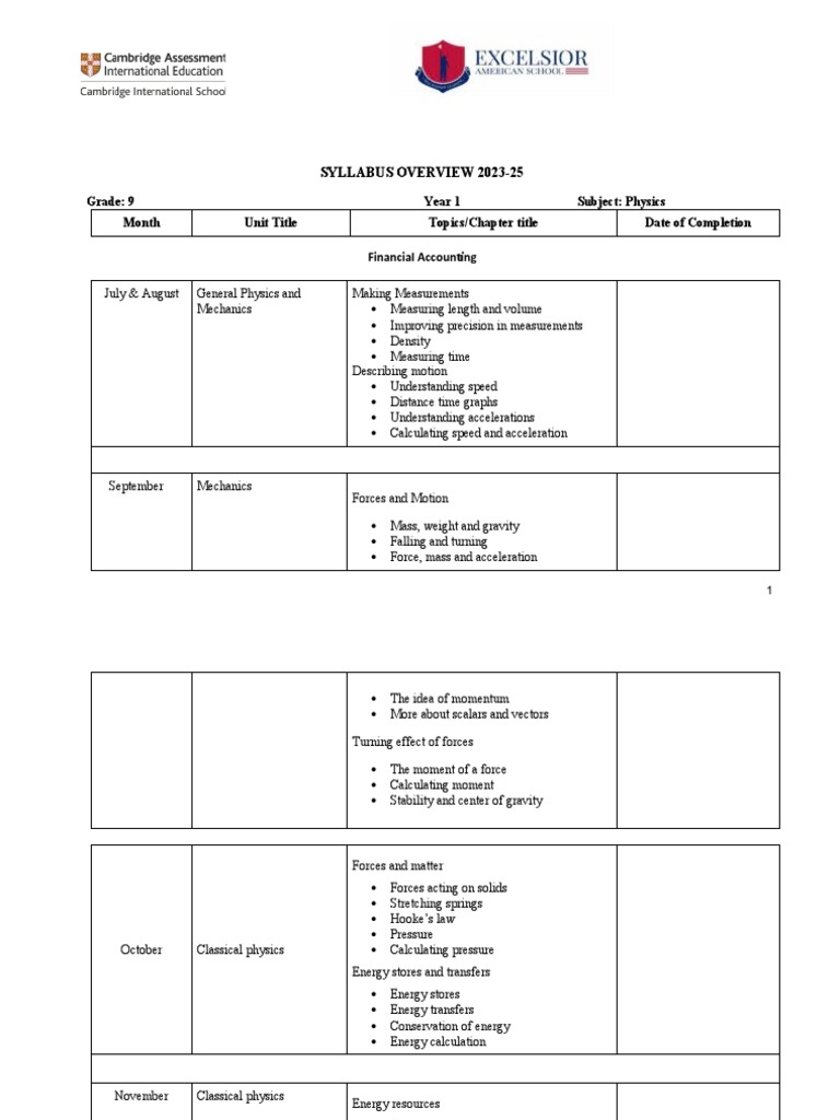 SYLLABUS OVERVIEW 2023 2025 Template PDF Heat Electricity