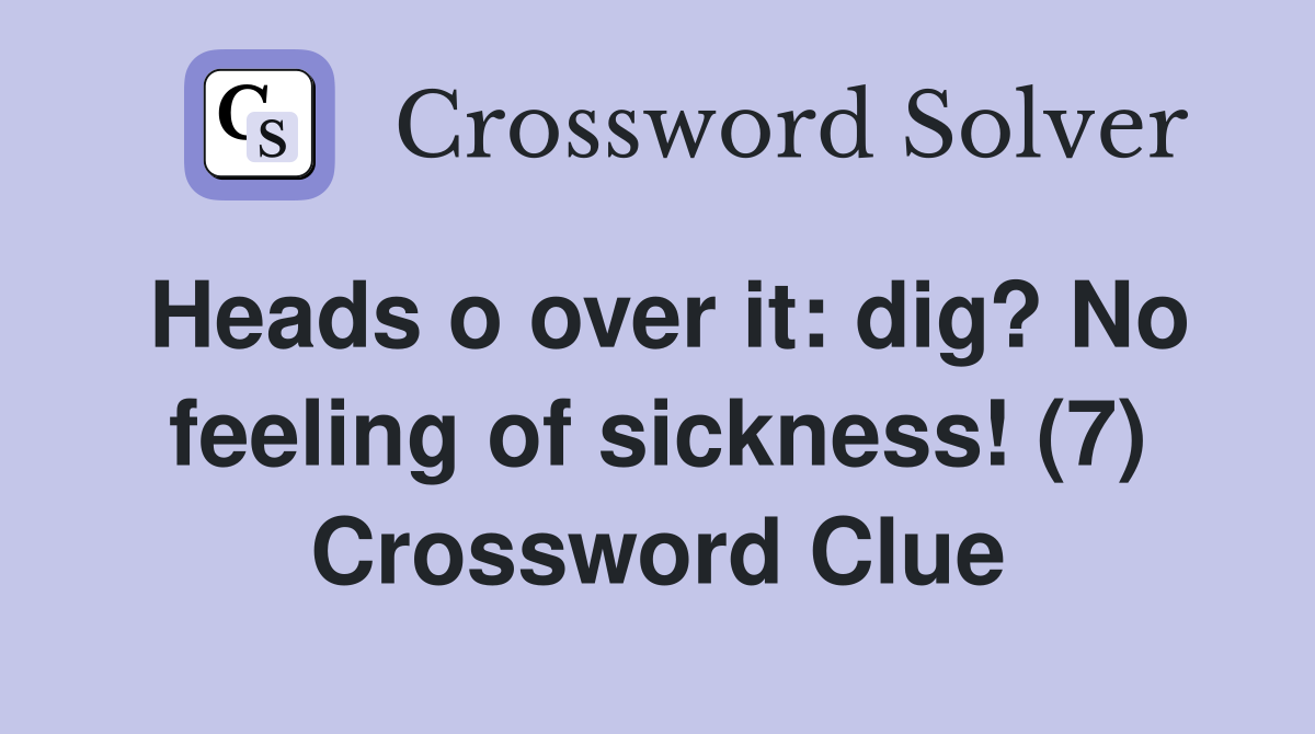 Heads o over it: dig? No feeling of sickness (7) Crossword Clue